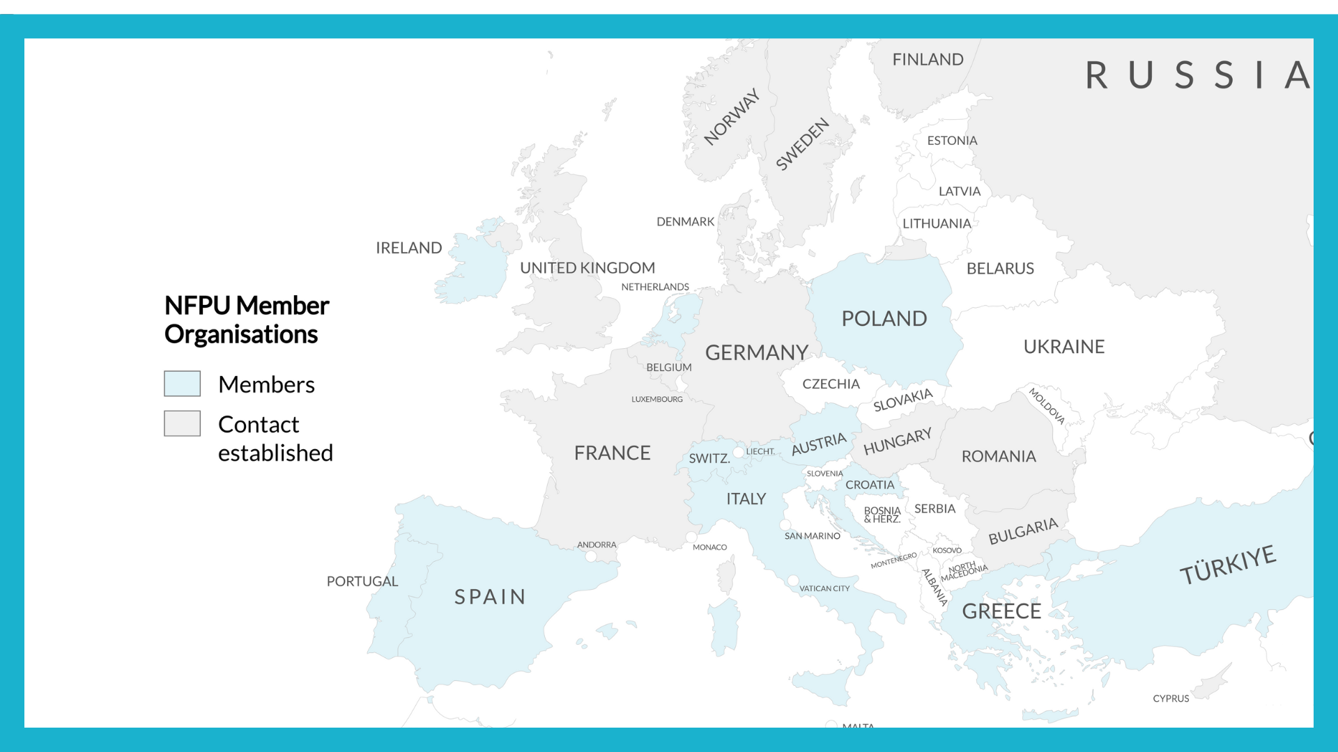 APNF – Associação Portuguesa de Neurofibromatose (Portugal), Türkiye Neurofibromatozis Derneği , SNFV (Switzerland), NF Ireland, GER-NF, NF Poland